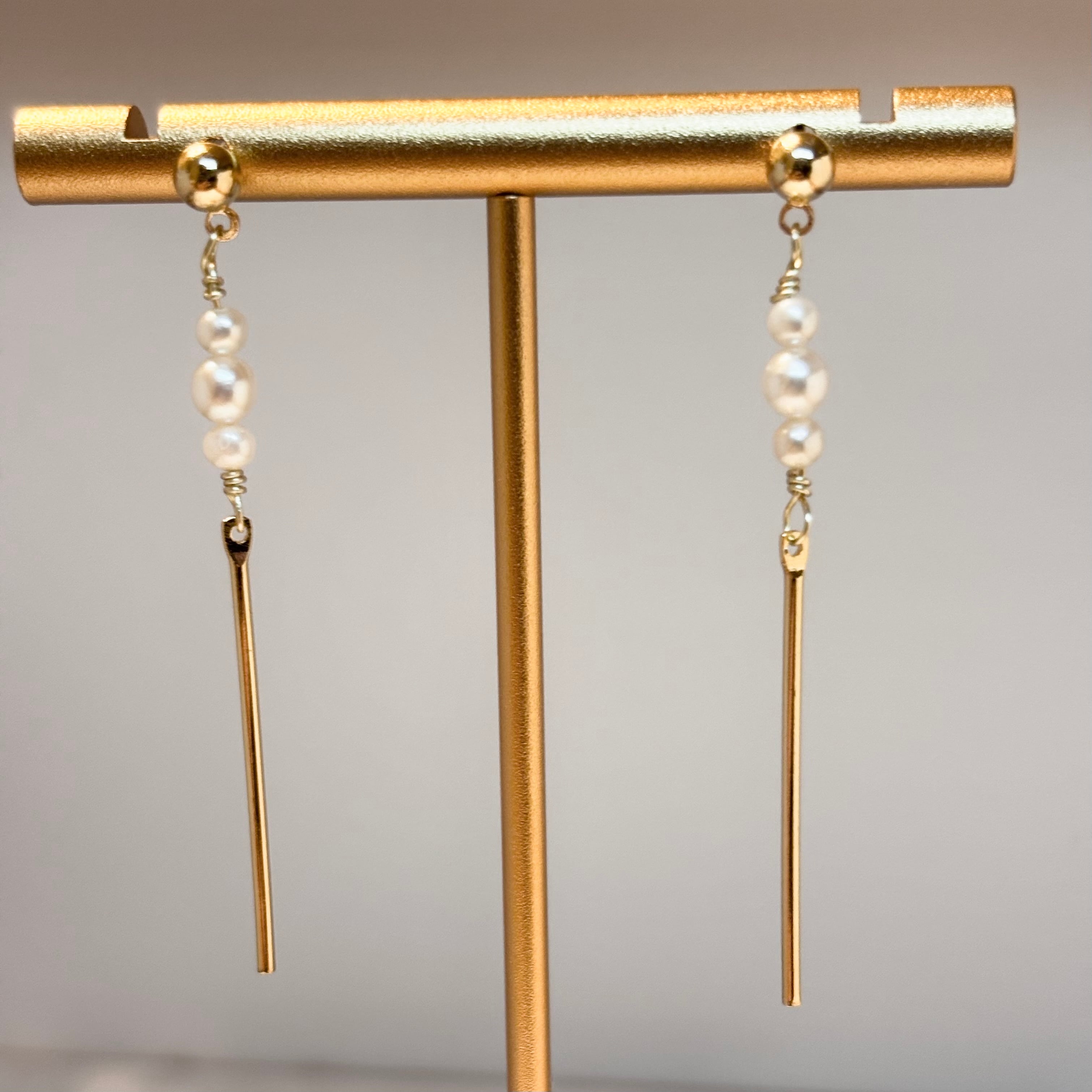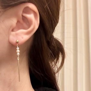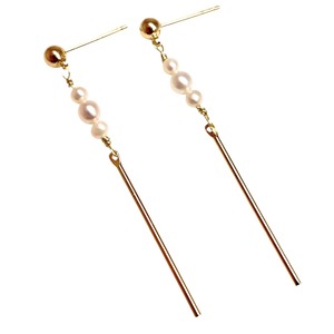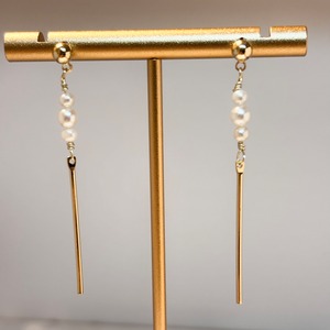 淡水パール&ゴールドバーピアス/14kgf
