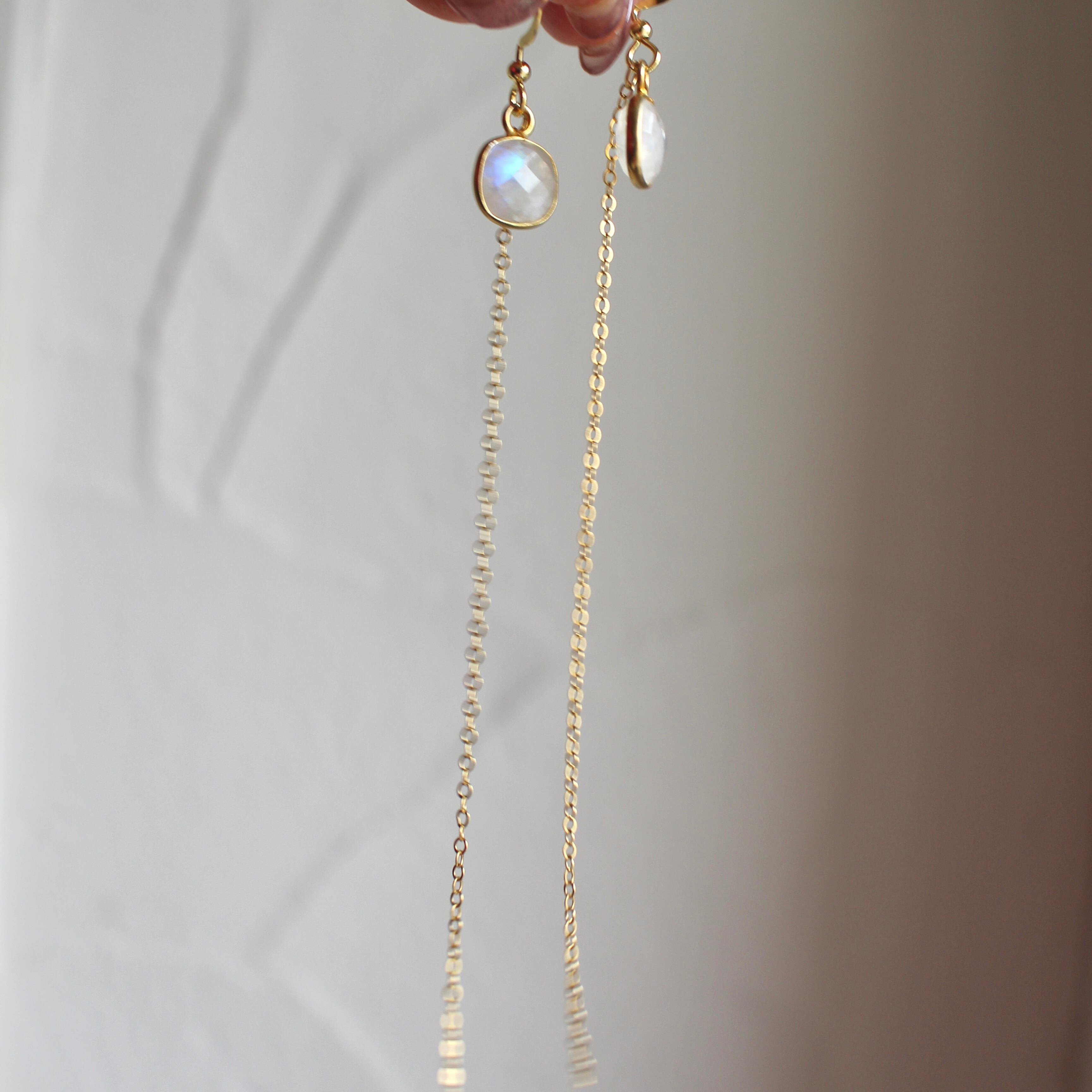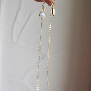 レインボームーンストーン 14kgfロングチェーン ピアス/16kgpイヤリング 022026h3