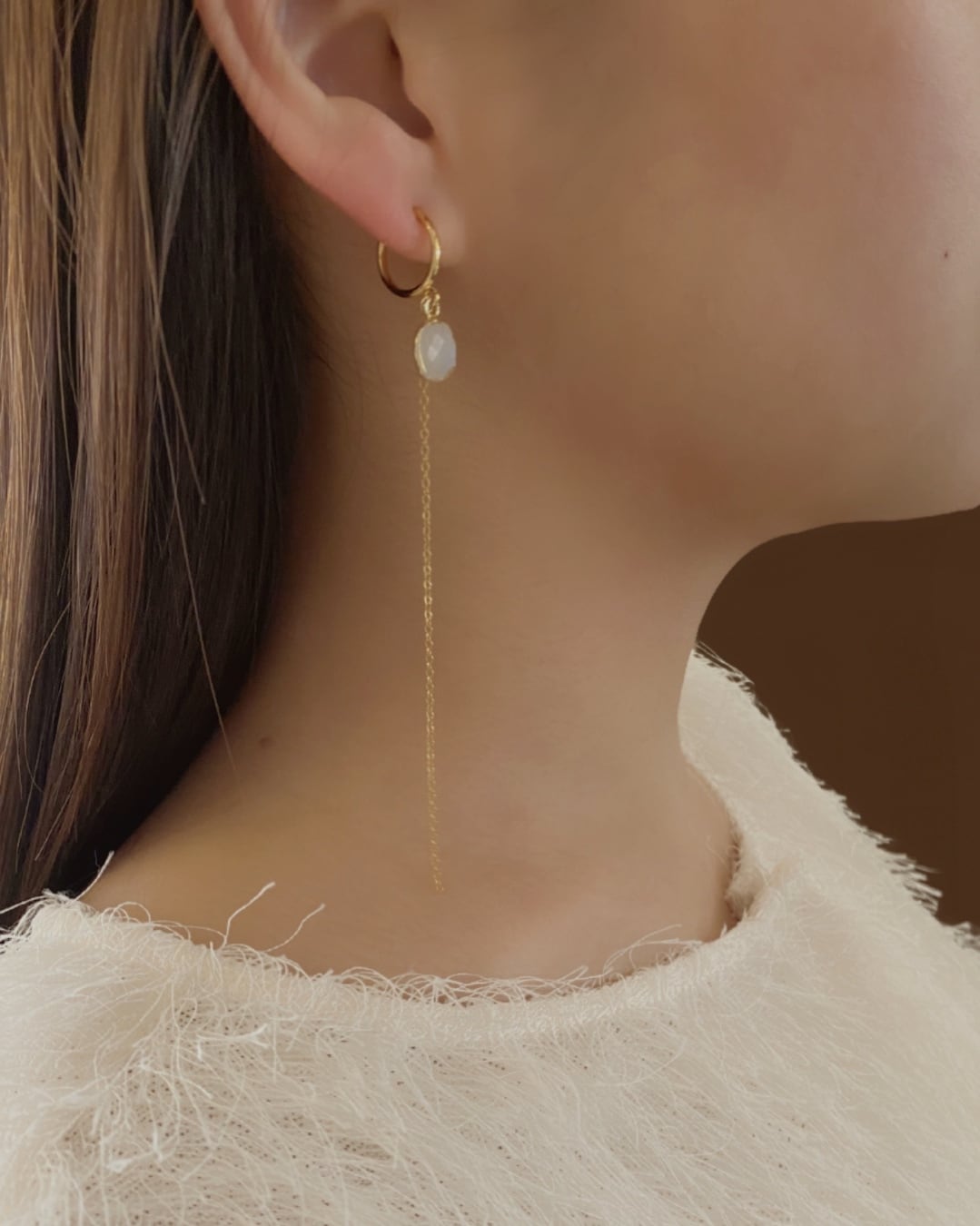 14kgfロングチェーンのエレガントなピアス/イヤリング。