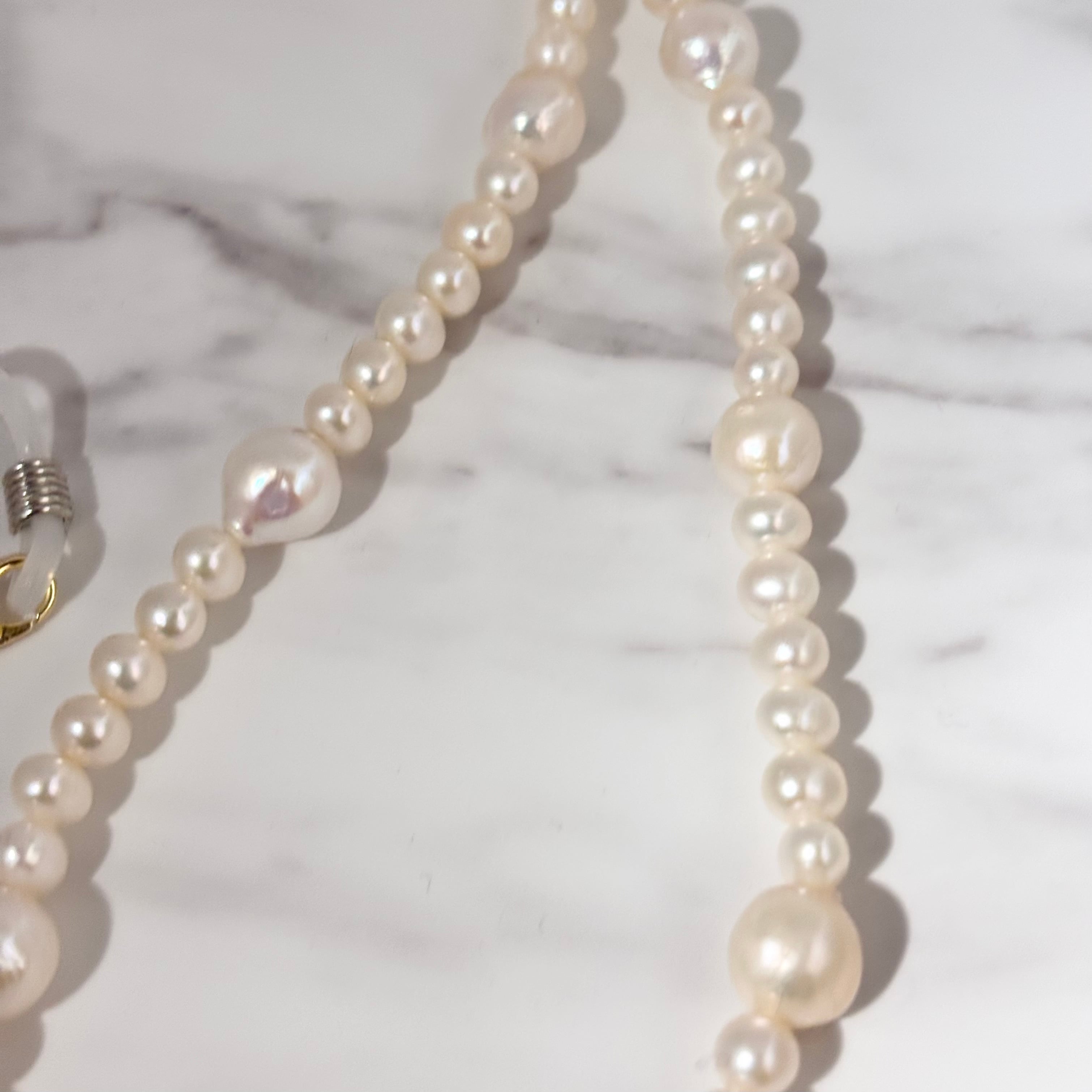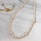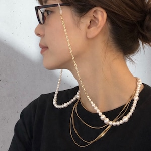 艶やかな淡水パールが顔まわりをやさしく引き立て、眼鏡を掛けた姿もさりげなく華やかに演出してくれます。
